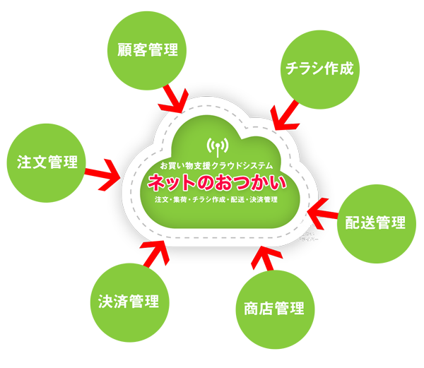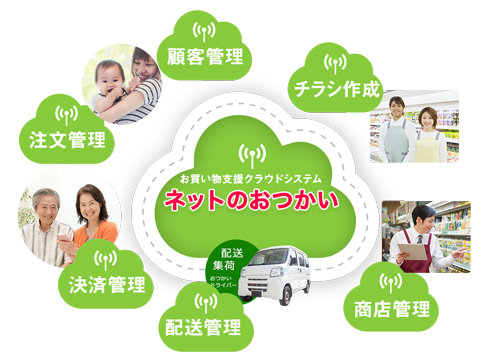 「ネットのおつかい」は、地域商店が連携して「買い物弱者」を支援するための導入・運用しやすいクラウド型パッケージプログラムです。